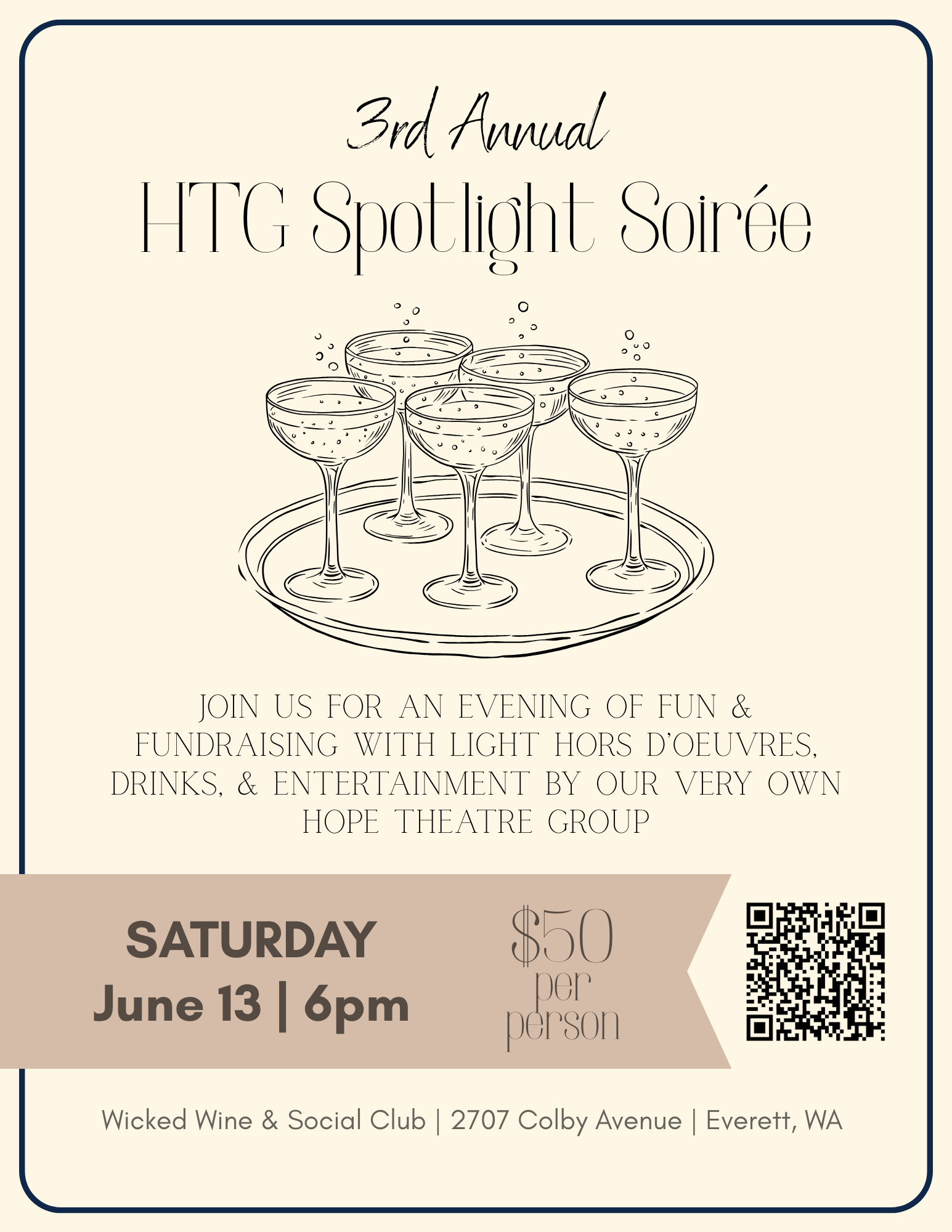 Join us for an evening of fun and fundraising with great raffle items, small bites, drinks, and entertainment by our very own Hope Theatre Group.